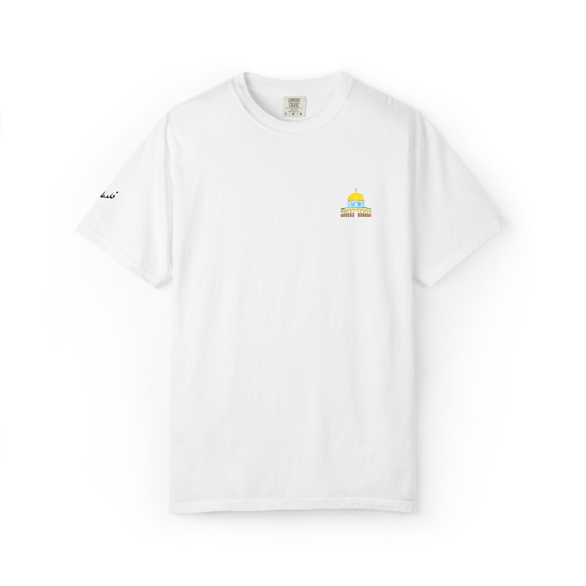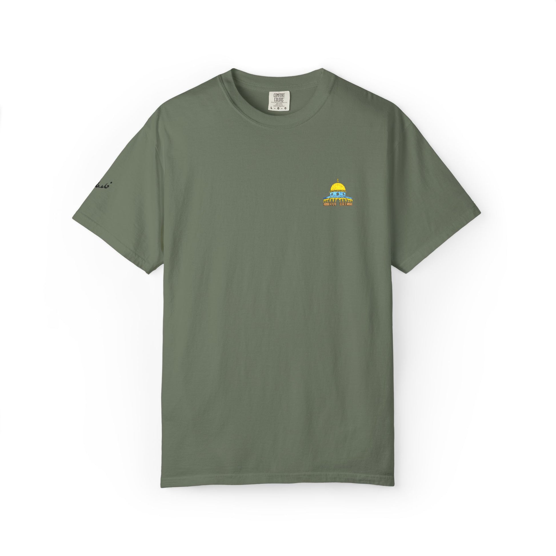 This garment-dyed tee features a hand-embroidered Dome of the Rock design on the chest, celebrating the iconic structure that has defined Jerusalem's horizon for generations. Made from 100% ring-spun US cotton with a soft, lived-in feel from day one, it's built for those who carry sacred places in their hearts.