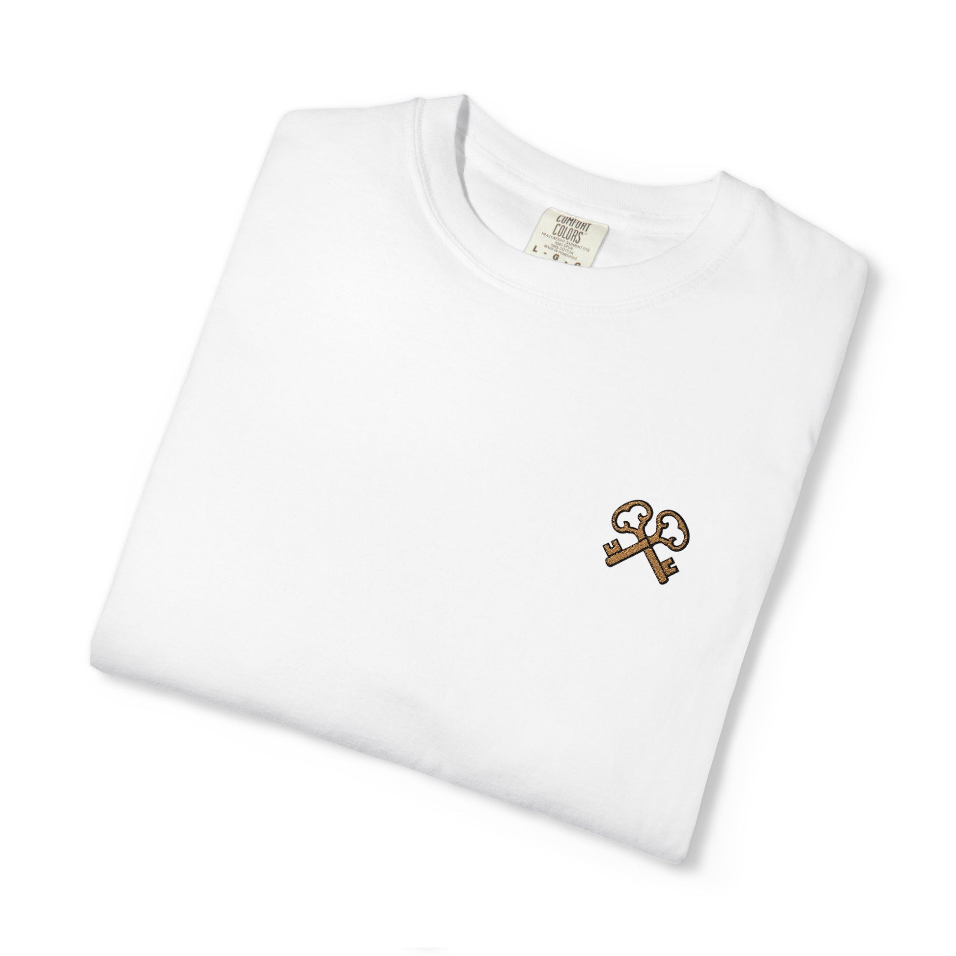 This garment-dyed tee features a minimalist key design on the chest, honoring one of Palestine's most enduring symbols of hope and resilience. Made from 100% ring-spun US cotton with a soft, lived-in feel from day one, it's built for those who understand that some symbols transcend time.